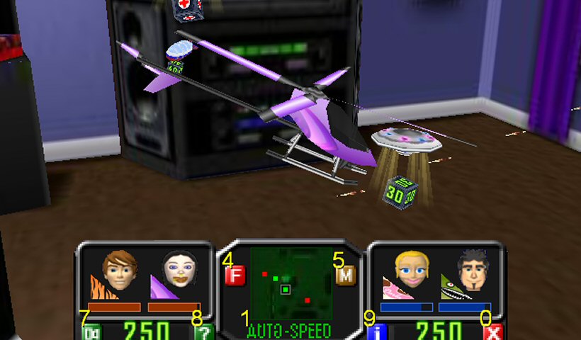 Command one of four cute and zippy RC Toy choppers armed with a fire-spitting cannon. Fight through seven rooms in a house designed as indoor combat arena, each with cartoon style furniture and brilliant interior decoration. Enjoy the fancy game play and unbeatable 3D graphics.