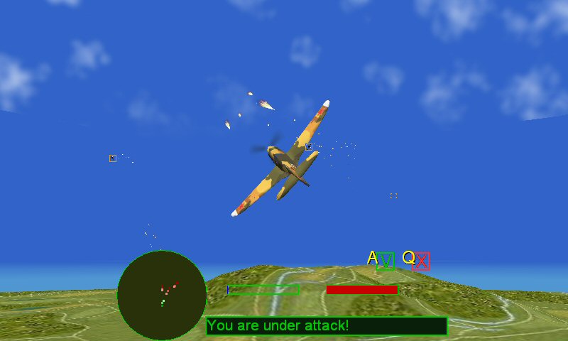 The game objective is to shoot enemies down with your cannon, and also survive yourself from enemies' fire. The mission score is evaluated by factors including number of enemy fighters shot down, damage status of enemy fighters, damage status of your fighter, and time spent.