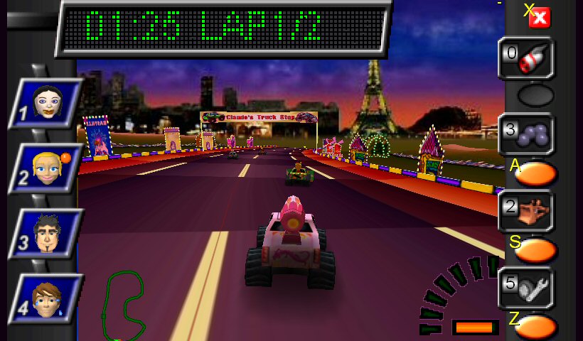 Plow down rivals and tear through obstacles with your roaring monster truck. Shoot at other monster trucks and make them tumble, tear up the roadblocks with your plow. Need high speed? Turn on the turbo to fly.