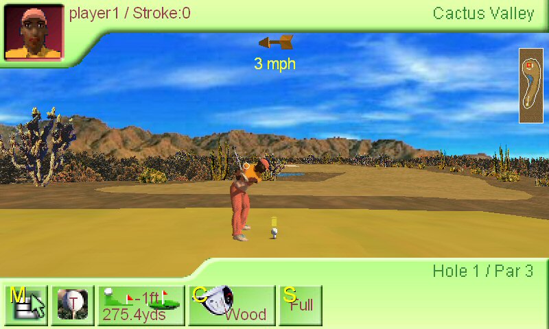 You can choose from two animated 3D characters, play three luxurious golf courses, each with a distinct landscape and climate for a total of 27 holes, and experience the best 3D rendering effect you can get for a mobile Golf game.