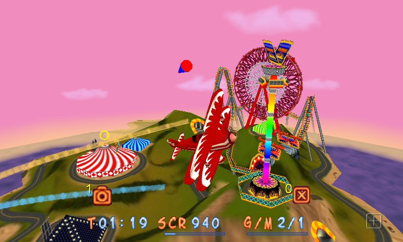 Super-G Stunt is a flight action game that takes you on a breathtaking aerobatic race through fun-filled fantasy environments!