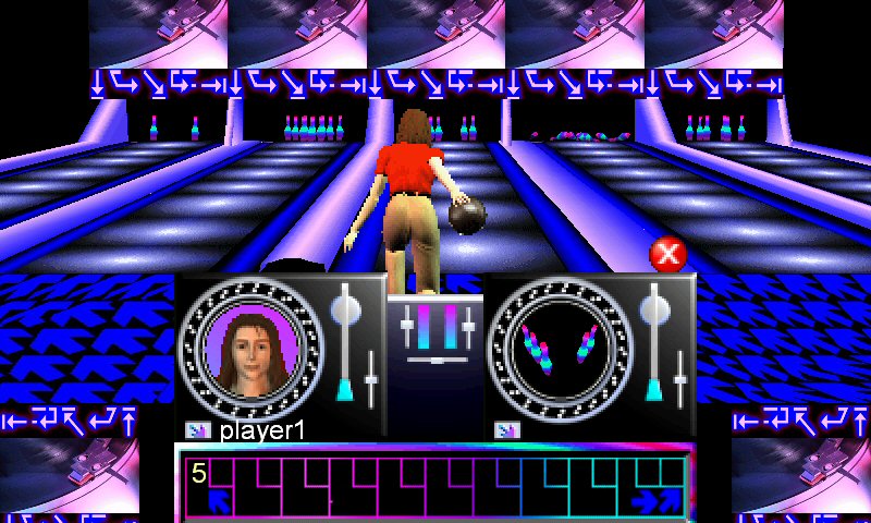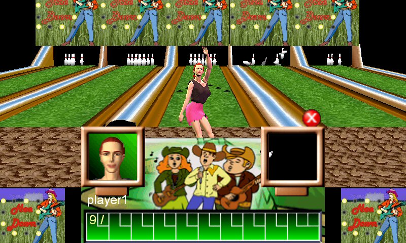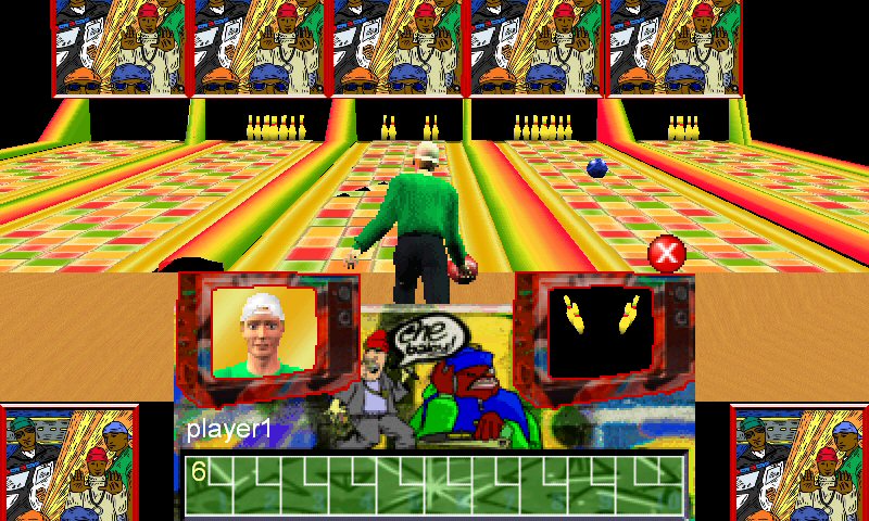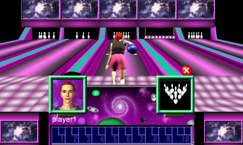 Dazzling graphics featuring colorful bowling alleys inspired by musical genres. Realistic and cartoon bowlers, each animated with unique expressions. Real-time 3D camera view and pin collisions.
